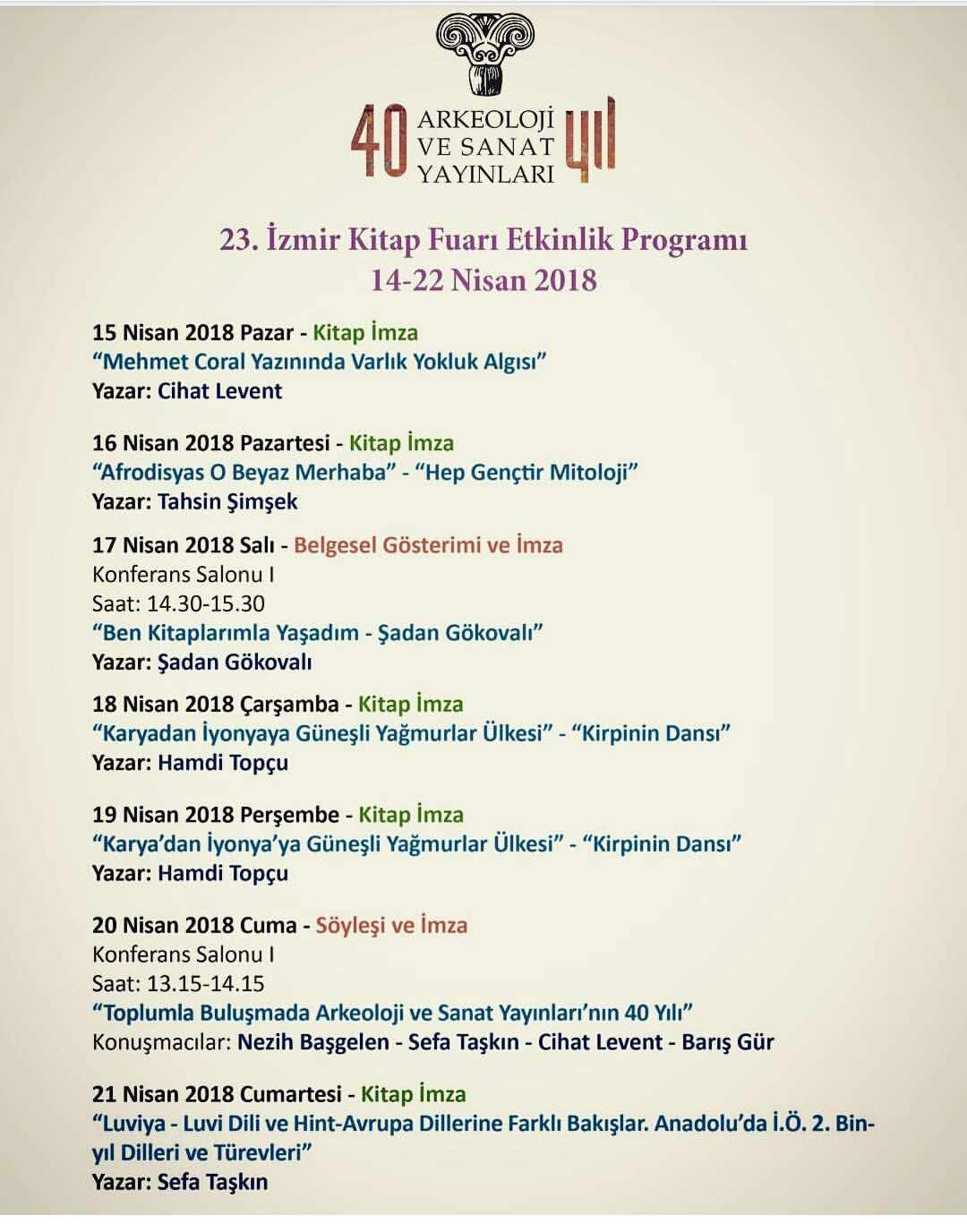 Arkeoloji ve Sanat Yayınları’nın 40. yılını kutladığı bu yıl, imza ve etkinliklerle doluydu.